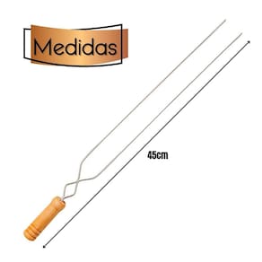 Espeto Duplo Alumínio 45cm com Cabo de Madeira Churrasqueira Dragão O Espeto Duplo de Alumínio 45cm com cabo de madeira Churrasqueira Dragão é ideal para churrascos práticos e bem assados. Com estrutura resistente, leve e de fácil manuseio, ele evita que os alimentos girem ao assar, garantindo cozimento uniforme. O cabo anatômico em madeira proporciona conforto e segurança térmica. Perfeito para carnes, legumes e muito mais. Um item essencial para todo churrasqueiro de verdade Características do Produto Tipo: Espeto duplo Material das hastes: Alumínio resistente Comprimento total: 45 cm Cabo: Madeira natural com acabamento anatômico Estrutura: Hastes duplas para maior estabilidade dos alimentos Indicação: Ideal para churrasqueiras domésticas e profissionais Seu design duplo mantém as carnes firmes e evita o giro indesejado ao assar, proporcionando cozimento uniforme. A leveza do alumínio com a pegada segura da madeira tornam esse espeto um item essencial para todo churrasqueiro Benefícios Evita que os alimentos girem enquanto assam Leve e resistente: alumínio que facilita o manuseio Cabo de madeira confortável e térmico Ideal para diversos cortes: , frango, picanha e legumes Fácil de limpar e guardar Perfeito para uso doméstico e Detalhes Técnicos Material das Hastes: Alumínio polido Comprimento Total: 45 cm Espessura dos fios: Aproximadamente 3 mm cada Tipo de Espeto: Duplo reto Distância entre as hastes: Ideal para fixação firme dos alimentos Cabo: Madeira com acabamento em verniz protetor Peso Aproximado: Super leve, fácil de manusear Espeto Churrasco Leve seu churrasco a outro nível com o Espeto Duplo 45cm Praticidade, segurança e sabor em cada assada. Garanta já o seu e vire o mestre da grelha Marca: Não Informado