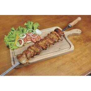 Espeto Simples 95 Descrição Produzido em nossa fábrica através do sistema de galvanoplastia mais moderna da América Latina, o Espeto Simples 95cm da Mor é item básico e indispensável para todo bom churrasqueiro Desenvolvidos com lâmina de aço com acabamento em cromo e cabo de madeira, os Espetos Mor são resistentes e duráveis, perfeitos para você preparar saborosos churrascos para a família e os amigos