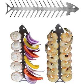 Material: aço inoxidável Cor: prata Tamanho da embalagem: 31 × 7 × 2 cm Peso da embalagem: 0,15 kg Lista de embalagem: 4 × espetos de churrasco Esses espetos de churrasco de aço inoxidável apresentam um formato exclusivo de espinha de peixe, adicionando um toque criativo às suas sessões de grelhar e oferecendo durabilidade excepcional para cozinhar carnes, frutos do mar e vegetais. Fabricados em aço inoxidável de alta qualidade, esses espetos são resistentes à ferrugem, duráveis e fáceis de limpar, garantindo um desempenho duradouro mesmo após o uso repetido na grelha. O design elegante desses espetos facilita a colocação de ingredientes sobre eles, e o formato de espinha de peixe garante que sua comida permaneça segura no lugar enquanto grelha para um cozimento uniforme e fácil de virar. Perfeitos para churrascos ao ar livre, piqueniques ou festas no quintal, esses espetos oferecem versatilidade e estilo, tornando-os ideais para grelhar carnes, peixes e vegetais para todas as suas necessidades culinárias ao ar livre. Esses espetos são reutilizáveis, o que os torna uma alternativa ecológica aos espetos descartáveis de madeira ou plástico, e sua superfície fácil de limpar garante sempre uma experiência de grelhar sem complicações.