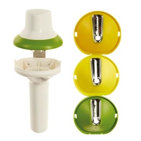 Trocando as lâminas você tem a possibilidade de fazer corte julienne fino, julienne espesso ou reto espesso.