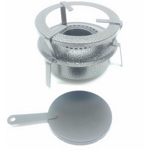 Fogareiro Portatil A Alcool Espiriteira Esmaltada Excelente fogareiro à álcool, muito econômico Cabe 50ml de álcool e fica por horas queimando. Poderosa chama que em apenas 15min pode ferver até um litro de água. Vem com tamanho compacto, cabe dentro de sua caixa de pesca, é muito resistente suporta panelas pesadas. Ideal para camping, cozinha, construções, restaurantes, escritório, caminhão, carreta, viajantes, ambulantes e farofeiros... Pare de comer marmita fria, tenha em sua casa, veículo ou trabalho para fazer um cafezinho quentinho, esquentar o rango... É para cidade, praia, ou camping. Por haver contato direto com o fogo, a pintura inicial pode sofrer danos normais. Pintura epoxi cinza Marca: Maxchamas Dimensões: 13 cm diametro e 8,5 cm de altura Peso : 360 gr.