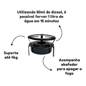 Conteúdo da Embalagem: 01 Fogão Portátil Espiriteira A Àlcool com Abafador.