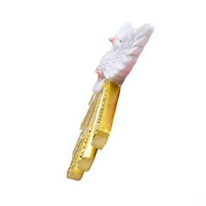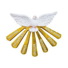 Enfeite em forma da imagem de Espírito Santo de 14 cm de altura. Vem com prendedor para ficar na parede. Material: resina