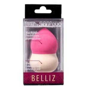 A Esponja para Maquiagem Belliz - Make Up 360 Duo é o que faltava na sua necessaire. Ela possui duas texturas diferentes que servem para dois tipos de acabamentos.A parte de cima, rosa escuro, tem uma textura mais firme, perfeita para depositar a maquiagem. Já a parte de baixo, rosa claro, é mais macia e tem uma textura muito macia, perfeita para usar no final da make dando acabamento mais elegante.? Pode ser utilizada seca para alta cobertura ou úmida para um acabamento mais natural? Formato gota, permite maior conforto durante o uso? Possui um lado arredondado para aplicação nas maiores áreas do rosto e um lado pontiagudo para alcance das menores áreas e aplicações precisas? Látex free? Material lavávelIndicação de uso: Indicada para aplicação de bases líquidas e cremosas e corretivosMaterial: 100% sintéticoPoliuretanoModo de usar: Utilize a parte superior para aplicar base e corretivo de sua preferência ao redor do rosto e depois finalize a make com a parte inferior para dar acabamento.Se preferir, pode umedecer para deixar a esponja maior e mais macia.A Marca:Belliz é uma marca que celebra a beleza que vai além da beleza. A beleza de se preparar todos os dias para os desafios, a beleza que vem da garra e de não desistir, a beleza que é retocada ao longo da jornada e a beleza que vibra quando se vence as batalhas e se conquista o que se deseja.Belliz possui um portfólio completo de produtos para todos esses momentos como pincéis e esponjas de maquiagem, escovas e pentes, unhas e cílios postiços, aliados para que toda mulher possa se preparar, conquistar e celebrar.