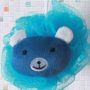 Esponja De Banho Bouton Com Bichinho Urso Com Corda Nylon Azul