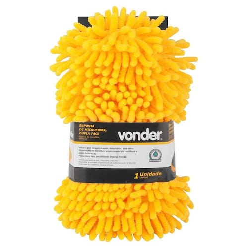 Detalhes da Esponja de Microfibra Dupla Face Vonder: Indicada para lavagem de autos, motocicletas, entre outros. Desenvolvida em microfibra, proporcionando alta resistência e poder de absorção. Possui dupla face, possibilitando limpezas diversas.