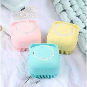 Esponja De Silicone para Banho Massageador Dispenser Shampoo Cor: Rosa