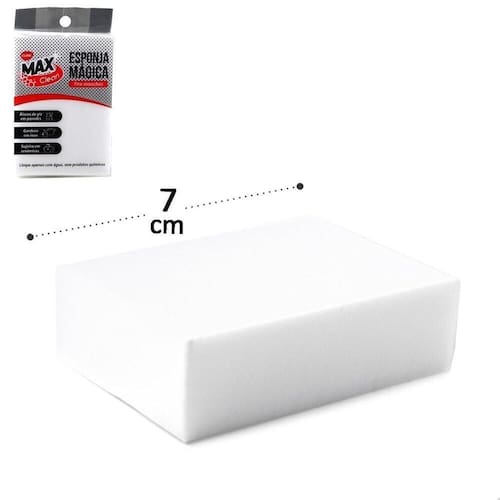Esponja Mágica de Melamina Limpeza Tira Man - Limpa Apenas com água, sem produtos químicos;\nEspecificações:\nMarca : CLINK\nTipo de material : Melamina\nCores ou Estampa : Branco\nDimensões do Produto : 10 X 7 X 3 CM\nDimensões da Embalagem : 10 X 3 X 7 CM\nPeso Bruto (Gramas) : 0.004
