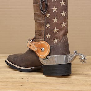 Espora Vinagre fabricada em Aço Inox. Possui cão com detalhes gravados na lateral, roseta de 8 pontas e garfo largo.