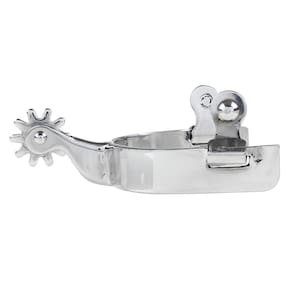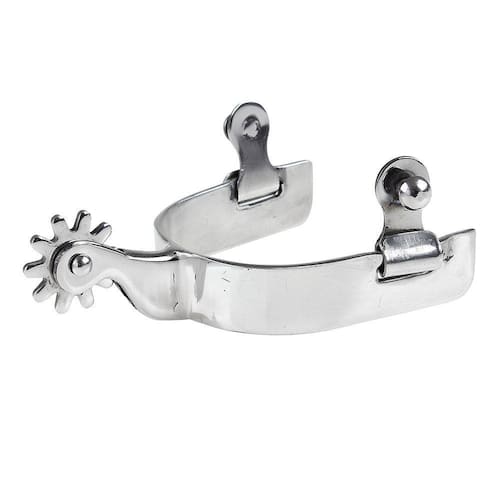 Espora Quarto de Milha Bronc-Steel fabricada em aço inox, possui cão reto e roseta de 10 pontas.