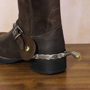 Uma Espora na qualidade M Reis modelo Roping, fabricada em Aço Inox, o Garfo da peça é estreito com detalhes torcidos e roseta de 11 pinos. Própria para as competições de Team Roping devido a sua única modelagem.
