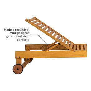 Resumo das Caracteristicas: Tipo: Espreguicadeira Material: Madeira Funcionalidade: Reclinavel com 4 posicoes Acabamento: Stain Canela Dimensoes: 30,5cm (altura) x 68,5cm (largura) x 195cm (comprimento) Marca: Não Informado