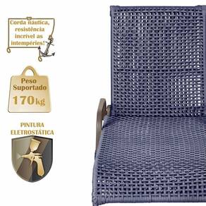 Produto conhecido como: Espreguicadeira reclinavel, Espreguicadeira em aluminio, Espreguicadeira com encosto ajustavel, Espreguicadeira para area externa, Espreguicadeira para piscina, Espreguicadeira resistente ao tempo, Espreguicadeira moderna, Espreguicadeira confortavel, Moveis para area externa, Moveis de aluminio para jardim, Corda nautica para moveis, Espreguicadeira leve e duravel, Design sofisticado para areas externas, Decoracao para varanda e piscina, Espreguicadeira resistente ao sol e chuva