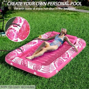 - Almofada confortável e base de almofada de ar – a piscina inflável de bronzeamento é almofada removível integrada e base de almofada de ar canelada. Almofada para suporte adicional ao seu pescoço. Base de almofada de ar para maior conforto. Projetado para a melhor experiência de descanso, relaxamento, banho de sol e muito mais.