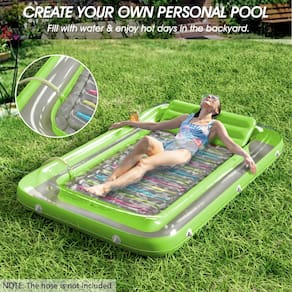 - Almofada confortável e base de almofada de ar – a piscina inflável de bronzeamento é almofada removível integrada e base de almofada de ar canelada. Almofada para suporte adicional ao seu pescoço. Base de almofada de ar para maior conforto. Projetado para a melhor experiência de descanso, relaxamento, banho de sol e muito mais.