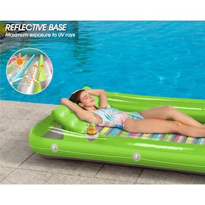 Boia inflável para bronzeamento – 4 em 1 reclinável relaxante, espreguiçadeira, jangada, tanner, banhos de sol, piscina infantil, piscina infantil