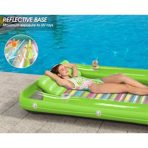 - Almofada confortável e base de almofada de ar - A piscina de bronzeamento inflável é uma almofada removível integrada e uma base de almofada de ar com nervuras. Almofada para maior apoio ao pescoço. Base de almofada de ar para maior conforto. Projetado para a melhor experiência de descanso, relaxamento, banho de sol e muito mais.