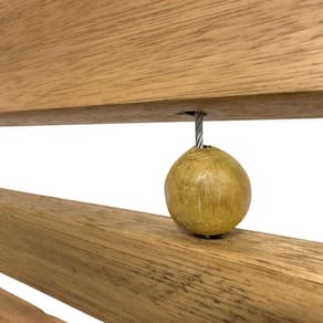 Fabricada com madeira de reflorestamento de alta qualidade e cordão de aço, ela suporta até 140kg. O acabamento em cera proporciona um toque suave e protege contra as intempéries, garantindo durabilidade e resistência.