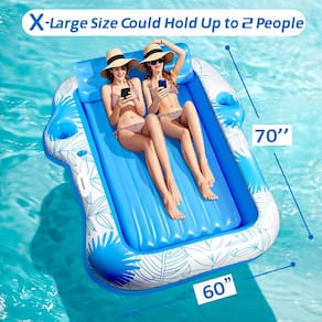 -?Flutuador de bronzeamento extra grande?O tamanho extra grande de 70” de comprimento e 60” de largura pode acomodar até 2 pessoas. Relaxe e aproveite o sol com estilo ou compartilhe o banho de sol com seu amigo ou membro da família na espreguiçadeira inflável para adultos JIANYHW.