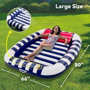 - ?Espaçoso e conveniente?Grande o suficiente (203 x 167 cm) para acomodar muitas pessoas, com o encosto removível e suporte de copo embutido, você pode relaxar todo o corpo e desfrutar de um bronzeado aconchegante.