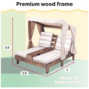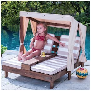 A KidKraft Double Chaise Lounges é perfeita para seus filhos relaxarem em dias quentes de verão. Com um dossel de três lados para proteção solar, há espaço suficiente para dois amigos ou até mesmo para a mamãe e o papai se juntarem. A espreguiçadeira possui porta copos embutidos para bebidas geladas ou lanches, além de um compartimento de armazenamento oculto para óculos de sol ou brinquedos. Construída com madeira premium e durável tratada para repelir água, a KidKraft Double Chaise Lounges é resistente às intempéries e manterá sua ótima aparência em todas as estações. Cada assento comporta até 38,55 quilos e é recomendado para maiores de 3 anos. A montagem leva aproximadamente uma hora para cada pessoa e o mobiliário de madeira para pátio apresenta cores e padrões que combinam com o estilo do seu quintal.