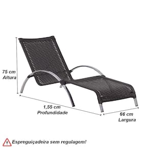 Espreguiçadeira Emily: - Altura total: 72 cm - Altura do assento ao chão: 27 cm - Largura: 66 cm - Profundidade: 162 cm - Suporta até 170 kg - Sem regulagem
