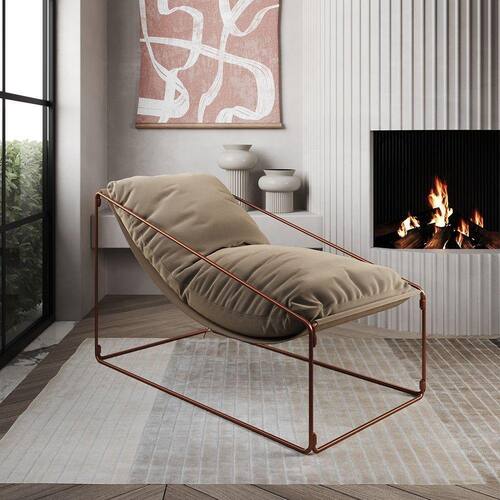 Espreguiçadeira Industrial Arpoador Com Almofada Cobre E Bege - Cor: Marrom