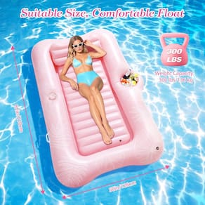 - Tamanho grande para espaço espaçoso: feita de PVC macio, a cama flutuante é confortável e não agride a pele. É resistente a rasgos e pode suportar o uso prolongado na água. O tamanho grande de 82 x 50 polegadas/210 x 128 cm oferece muito espaço e pode suportar até 300 libras/136 kg.