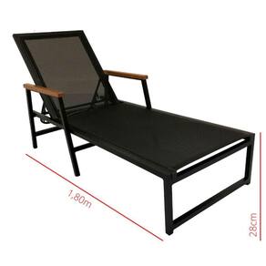 1,80m de comprimento x 28cm de altura do chão ao assento x 60cm de largura (encosto com 5 níveis de inclinação)