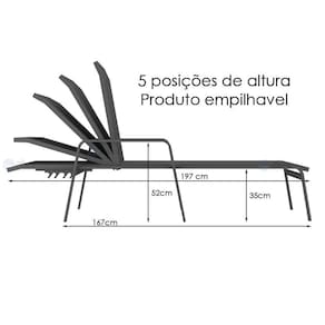 Profundidade: 167cm com o encosto levantado e 197cm com o encosto baixado totalmente