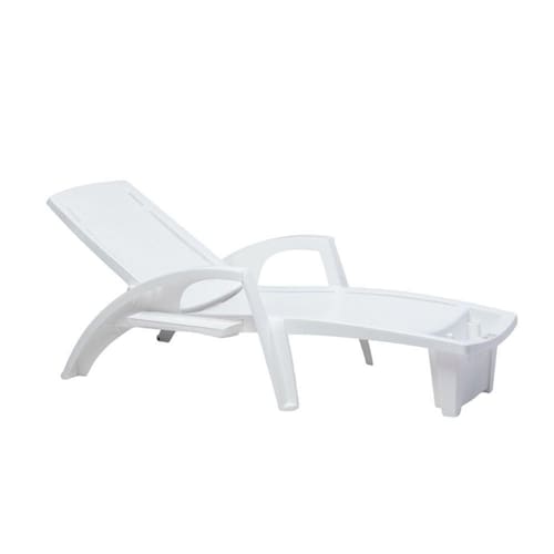 Produzida em polipropileno de alta resistência com proteção UV, é leve, durável e fácil de manter sempre impecável. Conta com encosto reclinável em quatro posições para acomodar diferentes momentos de relaxamento, roletes discretos que facilitam o deslocamento e porta-objetos com tampa que também funciona como apoio, oferecendo praticidade no dia a dia.