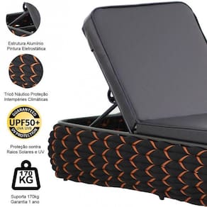 Espreguiçadeira Tricô Náutico Piscina Alumínio Jardim Trama Preto