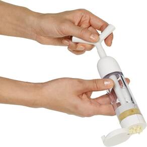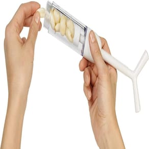 Insira dentes de alhos descascados e gire a manivela pressionando pronto, é muito simples de usar.