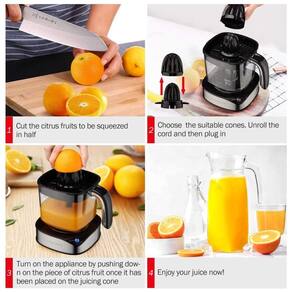 SIMPLES É MELHOR, ORIGEM É MELHOR Pressione e comunique se com a laranja, seu suco fica muito mais saboroso enzimas e outros nutrientes. Proporciona o sabor puro da laranja. DESIGN ÚNICO Motor mais potente, engrenagem projetada profissionalmente e base grande e estável fazem menos ruído e não balançam ao usar nosso espremedor de laranja. Adicionamos especialmente acabamento externo em aço inoxidável e uma luz indicadora clara na forma do produto. COPO DE GRANDE CAPACIDADE Um grande jarro transparente de 1,2 L quase 41 onças com marcações de medida que atende às necessidades de famílias grandes e festas. Além disso, o espremedor elétrico vem completo com tampa protetora que mantém a poeira afastada. FACILIDADE DE USO E LIMPEZA A estrutura é particularmente simples, apenas várias peças que são destacáveis para fácil operação e limpeza peças seguras para máquina de lavar louça. Você pode usar cones diferentes para extrair suco, porque há dois cones incluídos um grande, um pequeno adequado para limão, laranja, toranja e outras frutas cítricas. CONFORME A FDA, SEM BPA A máquina de espremedor usa materiais ambientais, cumpre com a FDA, sem BPA. Garantindo mais saúde e segurança. Garantia de devolução do dinheiro de 100, compra sem risco. O fabricante de suco de laranja oferece uma garantia de 12 meses para fornecer peças de desgaste e garantir um bom desempenho.