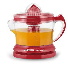 Espremedor de Frutas 220V Mondial E-23 Red Premium Com alto padrão de eficiência e qualidade, o Espremedor Premium E-23 da Mondial garante o rápido e fácil preparo de deliciosos sucos Esse espremedor da Mondial é ideal para quem busca um item para embelezar a cozinha, com um design moderno e primoroso, mas que também possua qualidade e eficiência garantidos Ele conta com jarra graduada de 1,25 litros para o preparo de sucos cítricos em questão de minutos, através do acionamento automático que funciona ao se fazer pressão no cone do espremedor. Através do motor reversível, ele funciona nos dois sentidos, possibilitando uma melhor extração do suco. Com porta-fio que permite ajustar o tamanho do cabo, o espremedor Premium E-23 ainda possui dois cones para extração, sendo um exclusivo para sucos de limão, que se molda e adapta melhor à fruta, proporcionando mais eficiência ao fazer uma deliciosa limonada Confeccionado na cor vermelha com estética impecável, ele conta com tampa para que você possa leva-lo até a mesa, garantindo menos louça para ser lavada e muito mais praticidade para você Não perca mais tempo e adquira agora mesmo o seu Espremedor Premium E-23 com qualidade e durabilidade que somente a Mondial poderia oferecer. Características: - Jarra graduada com 1,25 L de capacidade - 2 Cones para extração de suco de laranja e limão - Acionamento automático por pressão - Motor reversível: funciona nos dois sentidos - Com tampa que permite levar o aparelho até a mesa para servir - Com porta-fio que permite ajustar o tamanho do cabo - Design moderno