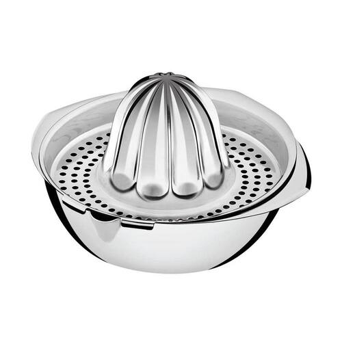 Espremedor de frutas aço inox Material: aço inox.Embalagem saco plástico. Recomendações de uso Antes do primeiro uso: Remova as eventuais etiquetas do produto e lave-o com água quente e detergente. Modo de uso: Para que seu produto de aço inox Tramontina fique sempre bonito e com brilho, recomendamos que seja lavado somente com detergente e esponja. Depois da lavagem, sempre que possível, enxágue o produto com água quente e seque-o imediatamente, para que se mantenha com o brilho original, pois o cloro e as substâncias contidas na água podem deixar manchas.