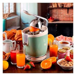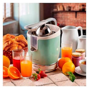 Potente, silencioso e com um design inconfundível o Espremedor Elétrico Vintage vai dar à sua cozinha o estilo retro e chique típico da Linha Vintage da Ariete, graças ao seu resistente corpo em metal e aos seus preciosos acabamentos cromados. Inclui 2 cones para frutos grandes e pequenos o cone grande de aço inoxidável ideal para laranjas e o cone pequeno equipado com um alfinete para bloquear confortavelmente até os frutos mais pequenos, como limões e limas. O espremedor profissional com alavanca de pressão esmaga a fruta com facilidade e garante-lhe um espremer profissional. A bica anti-gotejamento em aço inox evita o desperdício de suco e garante uma limpeza impecável das superfícies de apoio. Um suco de laranja no café da manhã é perfeito para se encher de Vitamina C, sais minerais e energia! Características Tipo: Espremedor Velocidades: 01 Capacidade: 0,6 Litros Funções: Espremer Com Alavanca Cones para Frutas grandes e pequenas Bico Anti-Gotejamento Motor Silencioso Especificações Técnicas Modelo: 413 Potência: 85 W (110V) e 60W (220V) Consumo de Energia: 0,85W (110V) e 0,60W (220V) Cor: Verde Voltagem: 127V / 220V (Não é bivolt) EAN: 8003705123014 (110V) e 8003705118140 (220V) Garantia: 12 meses Dimensões e Peso Dimensões do produto sem embalagem (AxLxP): 290x175x245 mm Dimensões do produto com embalagem (AxLxP): 315x235x235 mm Peso do produto sem embalagem: 2,10 Kg Peso do produto com embalagem: 2,55 Kg Itens Inclusos 01 Cone Espremedor Grande 01 Cone Espremedor Pequeno 01 Filtro 01 Tanque Armazenador 01 Transportador da bebida 01 Motor Agente Validador Produto possui certificação de segurança compulsória, certificado pela BRA23/00658, organismo acreditado pela CGCRE do Inmetro.