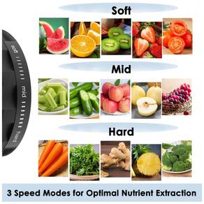 Espremedor de frutas de prensa fria NXONE com sistema de mastigação em espiral, 3 velocidades, função reversa, motor silencioso e proteção contra superaquecimento. Ideal para frutas e vegetais.Motor c/ dupla rotação