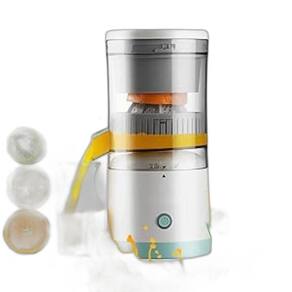 Características Gerais do produto Espremetrosedor de frutas elétrico 45W bivolt, portátil e recarregável via USB, ideal para diversos tipos de frutas.
