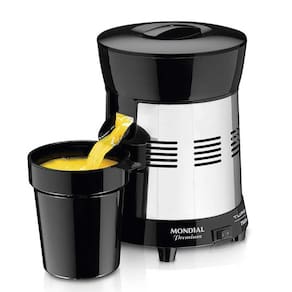 O Extrator de Frutas Mondial Turbo E-10 conta com 250W de potência para extrair sucos de frutas com eficiência e rapidez. Seu corpo em aço inox garante durabilidade e resistência com o contato com cítrico das frutas. Ele acompanha dois cones de diferentes tamanhos para que possa utilizar em laranjas e limões. O extrator de suco Turbo da Mondial conta também com um bico direcionador, depositando o líquido diretamente no copo, que acompanha o produto. Seu motor com duplo rolamento blindado e proteção térmica, proporcionam ao extrator de fruta alta eficiência e agilidade. Por ser bivolt, o extrator de suco de laranja é a escolha ideal para você que busca por versatilidade e praticidade no dia a dia. Esse extrator de suco mondial conta ainda com um compartimento para guardar o fio. Garanta potência e praticidade com Extrator de frutas mondial, perfeito para levar para piquenique e churrascos em família.