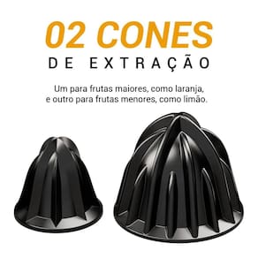 Jarra com 1,3L de capacidade, Bivolt, Acessórios: 2 cones para extração, 1peneira, 1 jarra, Potência de 260W, Encaixe rápido e prático, Baixo nível de ruídoMotor c/ dupla rotação