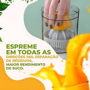 COMO USAR: 1 Corte as frutas ao meio, pode ser laranja ou outras frutas, dependendo do formato, é indicado que você corte em cubos; 2 Coloque no copo, respeitando a capacidade; 3 Feche a tampa até travar a mesma; 4 Pressione o botão até acender o led; 5 Aguarde o funcionamento e processo de extração do suco; 6 Espere que o suco chegue na marca limite; 7 Ao chegar na marca limite, abra o tampão e despeje o suco em um copo.