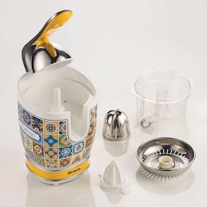 2 cones para frutas (grandes e pequenos), alavanca de pressão, bico gotejador em aço inox, ventosas antiderrapantes, compartimento para enrolador de cabo.Vendido e entregue por WebContinental