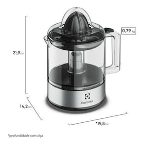 Espremedor de laranja fruta electrolux efficient 800ml ecp10 Voltagem: 110v Espremedor de laranjas e frutas electrolux efficient 800ml ecp10 Código: 4411akbr401 Marca: electrolux Tipo: espremedor de laranjas e frutas Espremedor de frutas electrolux efficient ecp10 é prático e fácil de usar. Com ele você pode desfrutar melhor do sabor e da textura de um suco extraído na hora no conforto da sua casa. Faça sucos deliciosos a hora que quiser de forma rápida preservando o frescor da fruta. Basta pressionar a fruta no espremedor para acionar o equipamento. Prepare suco para toda a família graças à capacidade de 800ml que permite produzir bastante suco e tirar o máximo de cada fruta. Além disso, o motor potente te garante menos esforço para essa tarefa. A rotação alternada permite que o espremedor gire automaticamente em sentido horário e em sentido anti-horário para extrair todo o suco da fruta com mais eficiência. Como o espremedor de frutas electrolux efficient ecp10 vem com 2 cones para diferentes tamanhos de fruta, tenha ampla variedade para escolher seu suco favorito, com o máximo rendimento. O filtro ajusta a textura do suco desejado: com ou sem gominhos. Com detalhe em aço inox escovado, o design sofisticado mescla sofisticação e durabilidade para sua cozinha. Para facilitar a limpeza, os acessórios removíveis podem ser utilizados em máquinas lava-louças e pensando na saúde de toda sua família, o produto é bpa free livre de bisfenol a . Metatag Faça seus sucos favoritos extraindo o máximo das diferentes frutas com o espremedor efficient ecp10. Além de prático, é fácil de usar e de lavar. Conheça Características Suco fresco a toda hora: extração rápida do suco. Acionamento automático ao toque da fruta: basta pressionar a fruta no espremedor. Motor eficiente e capacidade de 800ml: eficiência e maior capacidade ao preparar suco para toda a família. Rotação alternada: gire automaticamente no sentido horário e anti-horário, para extrair todo o suco da fruta. Espremedor com 2 ajustes: inclui 2 cones para frutas de diferentes tamanhos. Filtro ajustável: ajuste a textura do suco, com ou sem gominhos. Design sofisticado: combina sofisticação e durabilidade com o acabamento em aço inox escovado. Acessórios removíveis: facilita a limpeza dos acessórios. Compatível com lava-louças. Bpa free produto livre de bisfenol a. Especificações técnicas: Acabamento: aço inox escovado Acessórios removíveis: sim Acionamento automático: sim Altura embalado mm : 235 Altura mm : 219 Capacidade: 800ml Compatível com lava-louças: sim Cor da jarra: transparente Cor predominante: preto Frequência hz 60hz Garantia do produto: 1 ano Indicador de capacidade: sim Jarra removível: sim Largura embalado mm : 170 Largura mm : 198 Material / composição: plástico Modelo cód : ecp10 Peneira ajustável: sim Peso bruto kg : 1,0kg Peso líquido kg : 0,79kg Potência w : 30w Profundidade embalado mm : 170 Profundidade mm : 142 Quantidade de cones: 2 Rotação alternada: sim Tampa: sim
