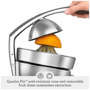 Espremedor de sucos Breville 800CPXL, estilo profissional, cone de sucos em aço inoxidável, sistema de braço ativo, filtros de aço inoxidável para controle de polpa variável e bica de suco com sistema anti-gotejamento.