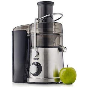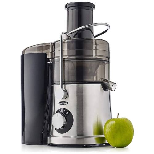 Espremedor de sucos Omega C2100S com 3 configurações de velocidade, rampa extra grande, recipiente de polpa removível e pés de ventosa antideslizantes.Motor c/ dupla rotação