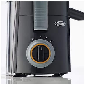 Espremedor de sucos Omega C2000B com 3 velocidades, 4 copos de capacidade, design compacto, trava de segurança e pés antiderrapantes. Ideal para frutas e vegetais.Motor c/ dupla rotação