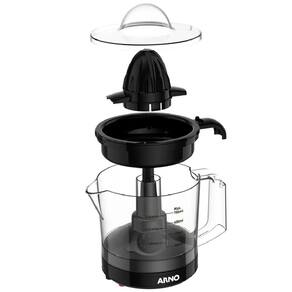 Design moderno, jarra transparente, acionamento prático com rotação que inicia com o pressionamento, filtro com regulagem para escolher a quantidade de gominhos no suco.Motor c/ dupla rotação