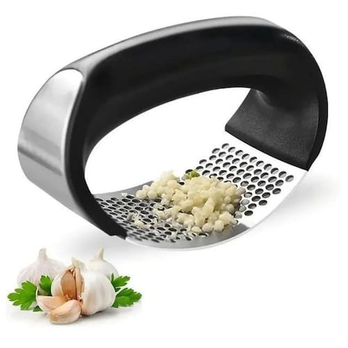 Arqueado design e fácil de usar, basta pressionar e você terá o alho descascado e espremido em segundos