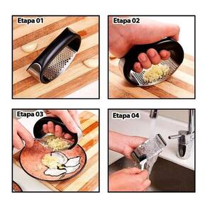 Para usar, basta colocar o amassador sobre os dentes de alho e fazer um movimento de gangorra enquanto pressiona. Outra vantagem é que o espremedor consegue triturar várias cabeças de alho de 1 só vez, sem a necessidade de executar a tarefa em etapas.